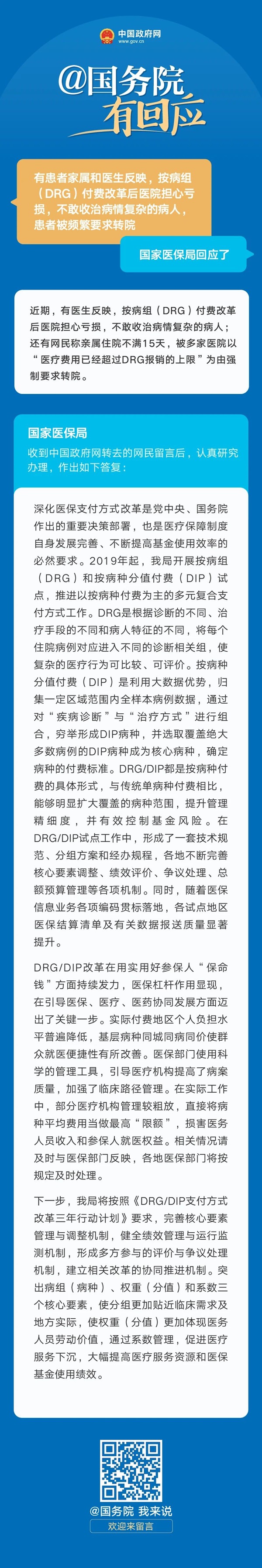 医生不敢收治复杂病人、病人被强制频繁转院,关于按病组(DRG)付费改革,国家医保局回应了