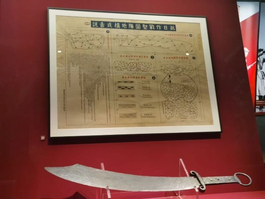 展覽現場亦有台兒莊戰役國民革命軍第三十一師曾用過的大刀。這柄上過戰場的大刀,刀身及手柄皆有斑駁痕跡,單刃厚背,刀尖傾斜,既可劈砍,亦能突刺。