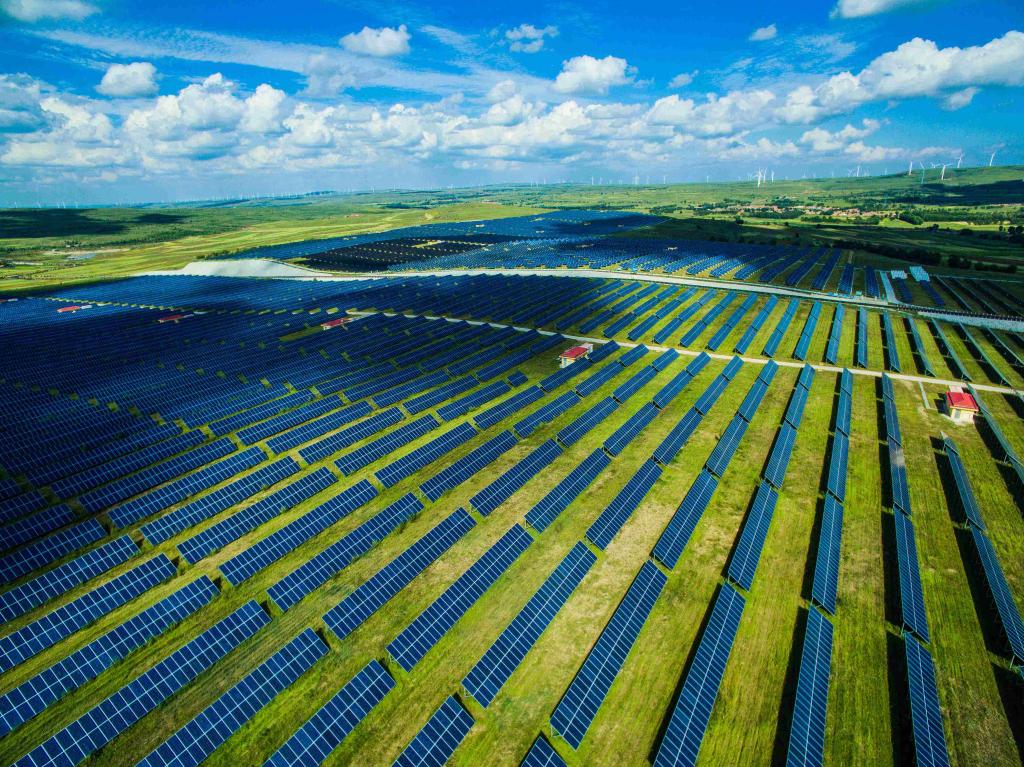 7月31日,位于张家口市张北县的国家风光储输示范工程俯瞰(无人机照片)。(受访单位供图)