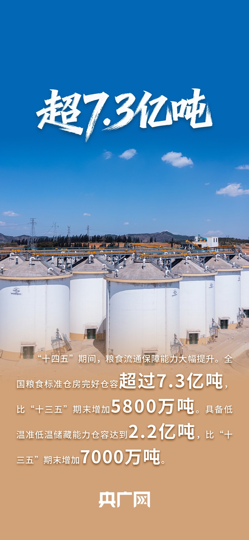 10月14日上午,国务院新闻办公室举行“高质量完成‘十四五’规划”系列主题新闻发布会,介绍“十四五”时期粮食流通改革发展成效,并答记者问。会上介绍,年均粮食收购量在4亿吨以上,全国粮食标准仓房完好仓容超过7.3亿吨,目前已建立了30个绿色储粮技术集成应用示范点,36个大中城市成品粮油储备持续保障15天以上市场供应量……戳图!一组数据读懂如何守住、管好“大国粮仓”!