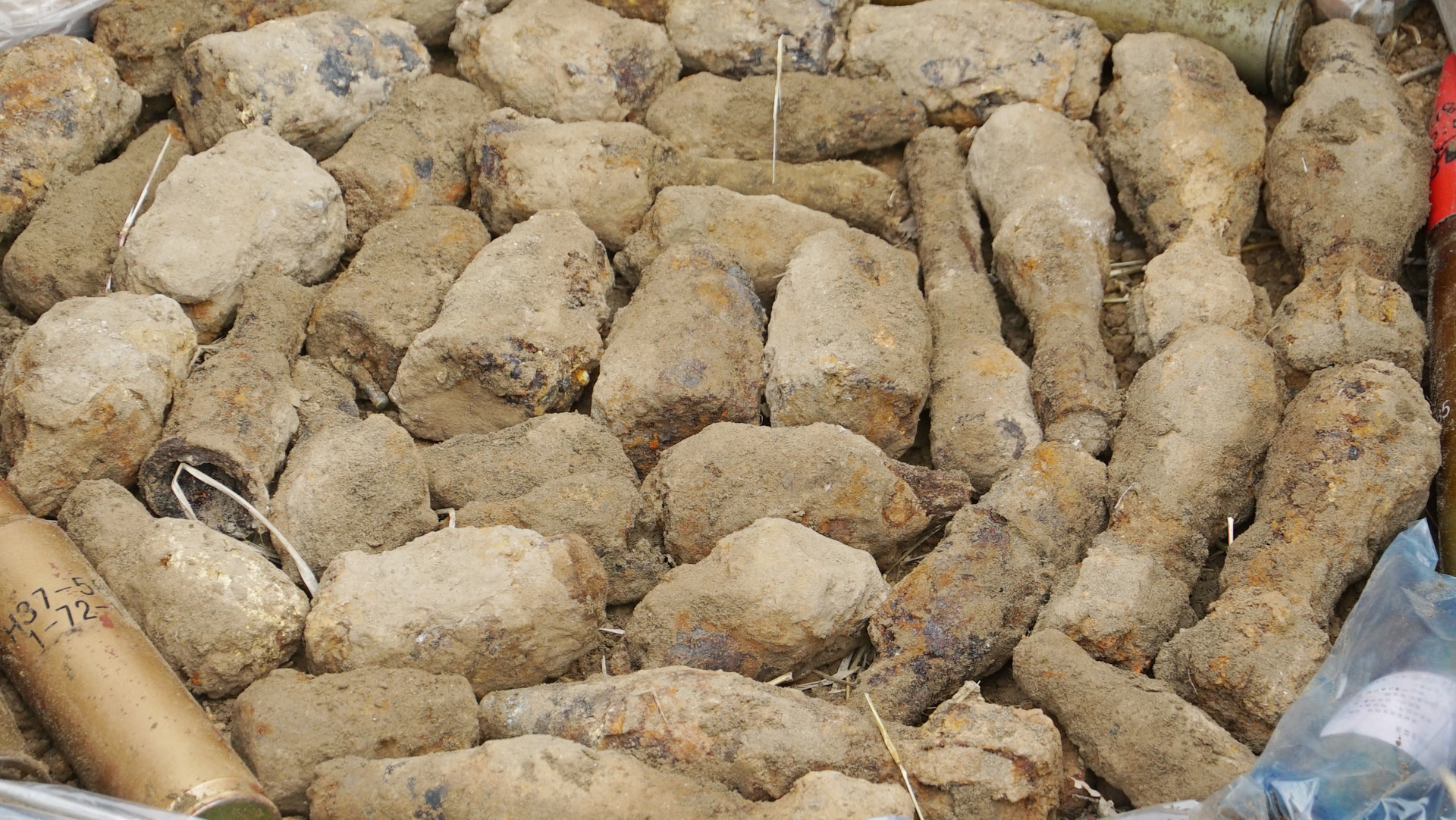 待销毁的废旧爆炸物表层覆盖了一层水袋。摄影李连杰
